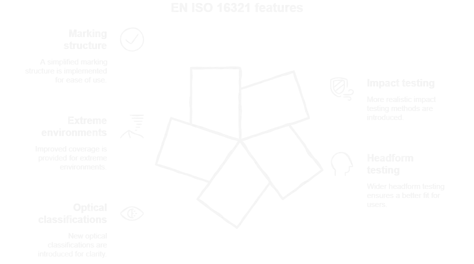 EN ISO 16321 is the new global standard for occupational eye and face protection. It replaces several older European standards including: